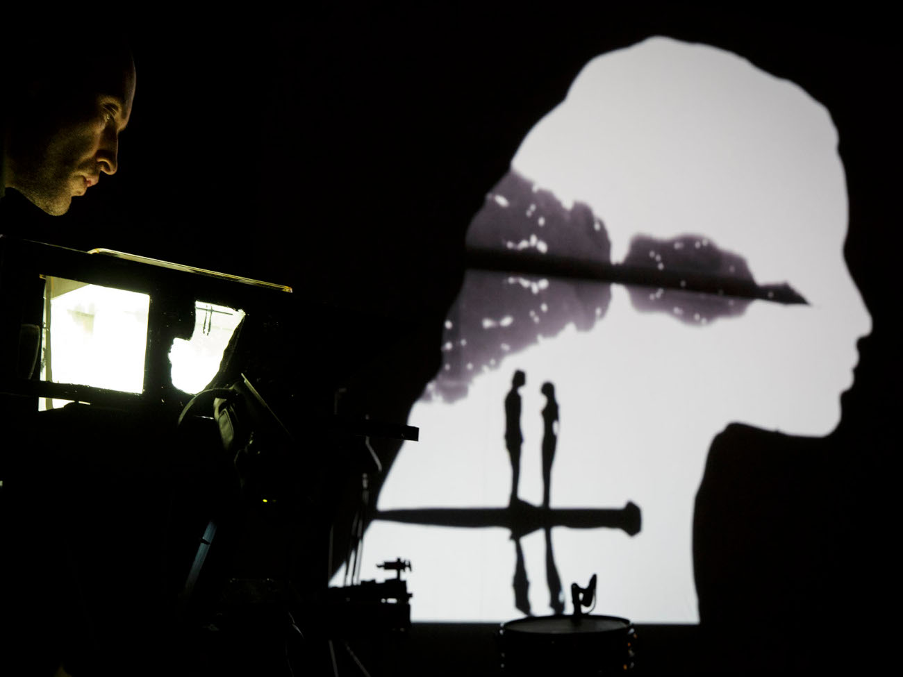 In this show, we are enchanted by images drawn to music. In Romain Bermond’s hands, charcoal, ink, cut-out paper and small puppets draw constantly changing black-and-white pictures. Jean-Baptiste Maillet, on keyboards, bass and harmonica, among other instruments, brings them to life. His infallible rhythm and ample, shimmering or melancholy melodies envelop the story of this topsy-turvy world. For the past ten years, this inseparable duo has been offering a poetic, handcrafted theater of images, where the eye travels between the drawing table and the big screen. The beauty of the gesture, the magic of the line, the metamorphosis of a silhouette or a landscape give rise to a three-dimensional world that pulsates and fills us with wonder.