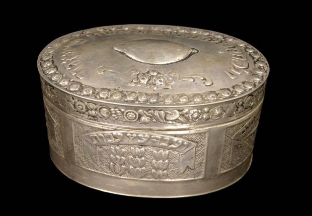 The citron, also known as etrog, is a citrus fruit that plays a role in the Jewish festival of Sukkot, the Festival of Cabins. This name refers directly to the small, ephemeral structures built into houses in memory of the tents in which the Jewish people sheltered after leaving Egypt. During the reading of the psalms, the citron is held in the left hand, while a branch made up of date palm, myrtle and willow branches – 4 spices that symbolize Torah study – is held in the right. While the branch is brought to the synagogue wrapped in a cloth, the citron is transported in a box made of cardboard, wood or decorated metal, as shown here. The inside of the boxes can be padded to preserve the fruit’s rind and stalk, which give it its symbolic value. The etrog is sometimes considered the forbidden fruit of the Bible, and may also be called “Adam’s apple” or “Paradise apple”. A widely-held popular belief is that biting into a citron will ensure that a pregnant woman will have a male child.