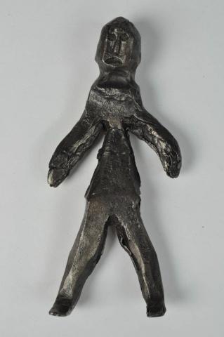 An ex-voto is an object offered in request or thanks for a grace granted by God or a holy intercessor. While ex-votos thanking for a miraculous rescue may take the form of small paintings depicting the accident, we also come across three-dimensional objects illustrating the wish expressed, as in this case. To ask for the healing of a diseased organ or limb, one might offer a representation of the organ or limb, in metal, clay or wax, for example. This is known as a morphological or therapeutic ex-voto. Sometimes it’s a representation of the whole body, as shown here, which is made and offered to place a person under protection or to thank for healing. But beyond people, ex-votos can also be used to protect livestock, or even the material possessions dear to their owners.