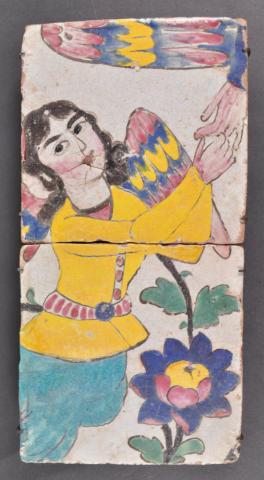 These tiles were produced under the Iranian Safavid Empire (1501-1736), when the cities of Meched, Yedz and Kirman were the main centers of ceramic production.