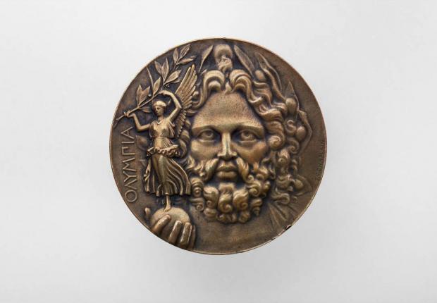 Même s’ils ne sont pas officiels, ces jeux sont importants dans la genèse olympique car ils marquent le début des traditions cérémoniales, avec notamment le défilé des athlètes et les remises de médailles. Cette médaille de bronze a été remise à l’équipe grecque pour sa troisième place. L’iconographie portée sur les deux faces de la médaille – l’acropole d’Athènes d’un côté et le Zeus d’Olympie portant la Victoire dans sa main droite, de l’autre – fait référence aux jeux antiques et instaure une filiation entre la Grèce moderne et la Grèce antique, dans un contexte de consolidation de la conscience nationale face au pouvoir ottoman.