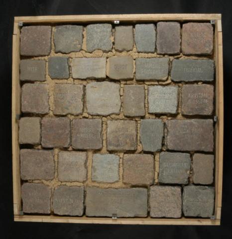 Un premier de ces droits est la reconnaissance de l’identité de la personne. Les associations de malades se sont battues contre le silence et la honte entourant l’épidémie en son début et encore largement maintenant. C’est ce qu’exprime l’œuvre de l’artiste allemand Tom Fecht. Elle fait partie d’un ensemble intitulé « Mémoire Nomade, Namen und Steine » (Noms et Pierres). Quarante autres installations, permanentes ou éphémères, se trouvent principalement dans des pays d’Europe du Nord. Il s’agit ici de mettre en lumière et de rappeler à la mémoire l’anonymat dans lequel sont restés de nombreux malades décédés du sida. C’est pourquoi, à côté de pavés gravés aux noms de victimes connues ou inconnues de l’épidémie, figurent des prénoms seuls, des signes « + » indiquant que la maladie frappe toujours et des pavés sans noms. Certains des noms sont ceux de personnalités du domaine des sciences humaines ou artistiques (Mikaël Pollak, Michel Foucault, Jean-Paul Aron, Derek Jarman, Klaus Nomi) ou encore de militants associatifs (Cleews Velay, président d’Act Up-Paris, Pierre Kneip, fondateur de Sida-Info-Service).
