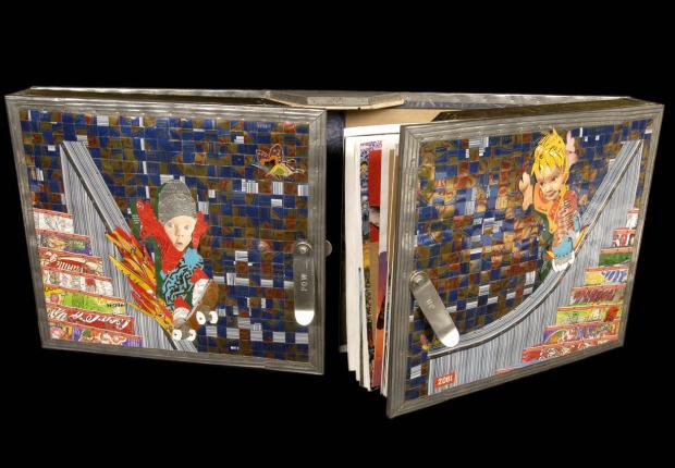 Ce coffret est une pièce unique réalisée en 2003, à Montmarault, dans l’Allier, par cinq jeunes garçons âgés de 14 à 16 ans, réunis par la passion du skateboard. C’est un coffret en bois dont la décoration extérieure est réalisée à partir d’un tressage de pièces d’aluminium issues de canettes de soda. A l’intérieur (le coffret peut s’ouvrir et se dérouler sur 11 mètres), ces jeunes garçons, aidés par leurs parents, ont rassemblé des pièces administratives – lettre manuscrite, étude de faisabilité, assurance, devis, sondage réalisé auprès des habitants de la commune – ainsi que des documents d’information et de pédagogie relatifs au skateboard, pour expliquer à l’équipe municipale leur pratique et leur mode de vie ainsi que leurs attentes en matière d’équipement.
