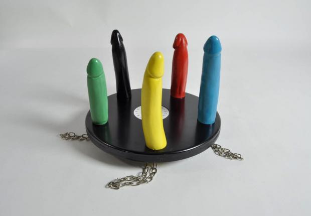 L’objet tire son nom d’usage de la plate-forme circulaire horizontale tournante sur laquelle sont insérés, retenus par des chaînettes, les cinq pénis jaune, bleu, rouge, noir et vert, dont la taille et la forme variées visent également à rassurer les jeunes. Cette création du centre régional d’information et de prévention du sida (CRIPS) d’Île-de-France est distribuée en Espagne par l’association catalane Sida-Studi, de Barcelone.