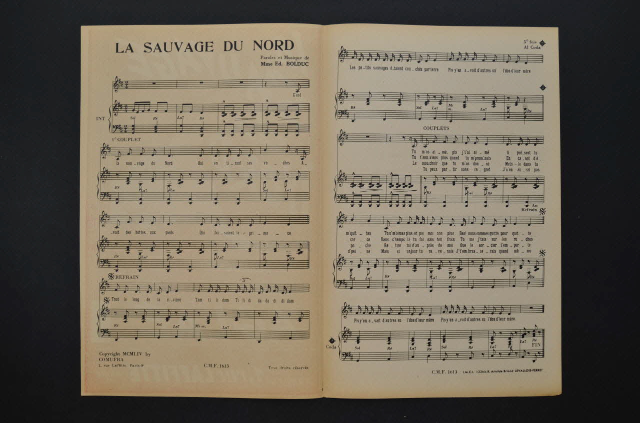 chanson, petit format, partition de musique, La sauvage du Nord