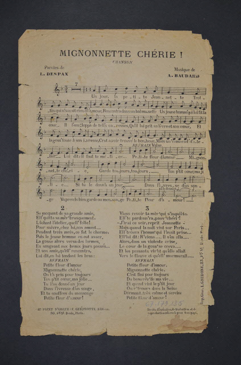 chanson, petit format, partition de musique, Mignonnette chérie !