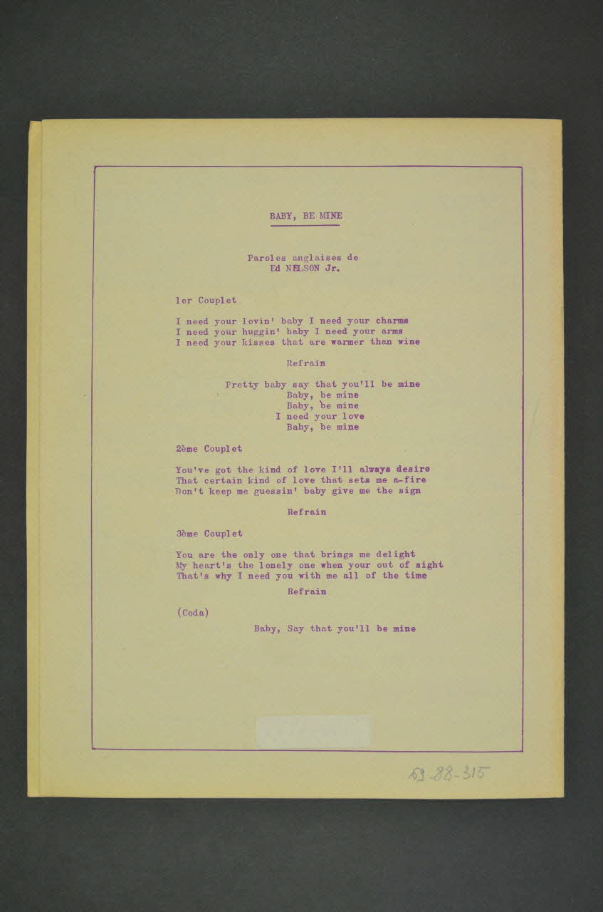 partition de musique, chanson, petit format, Baby, be mine (Chéri je t'attendrai)