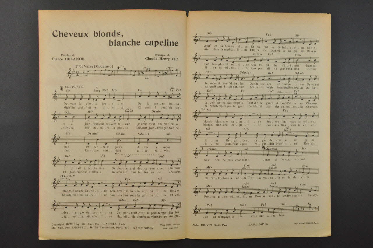 partition de musique, chanson, petit format, Cheveux blonds, blanche capeline