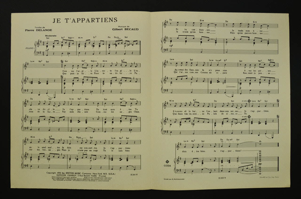 partition de musique, chanson, petit format, Je t'appartiens