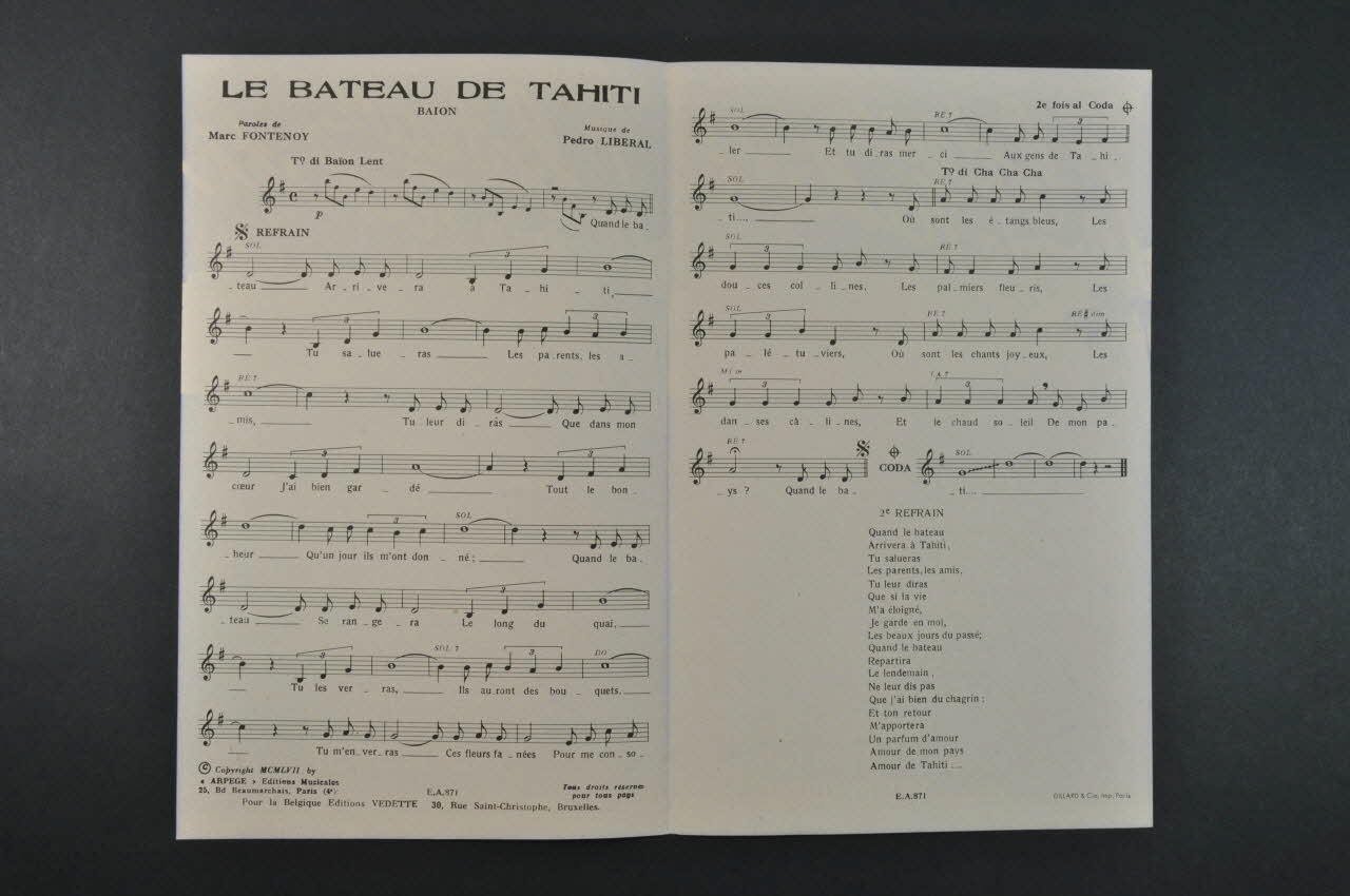 partition de musique, chanson, petit format, Le bateau de Tahiti