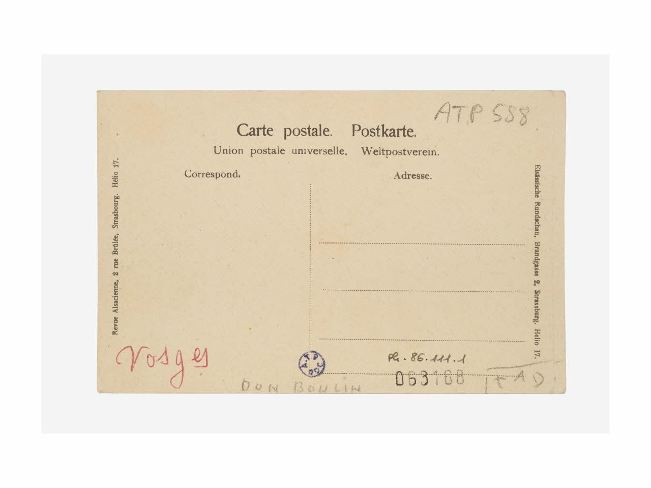 Lieu : Strasbourg, Bas-Rhin, Alsace, FranceDate : 1903 - 1920Carte postale éditée par le Revue alsacienne