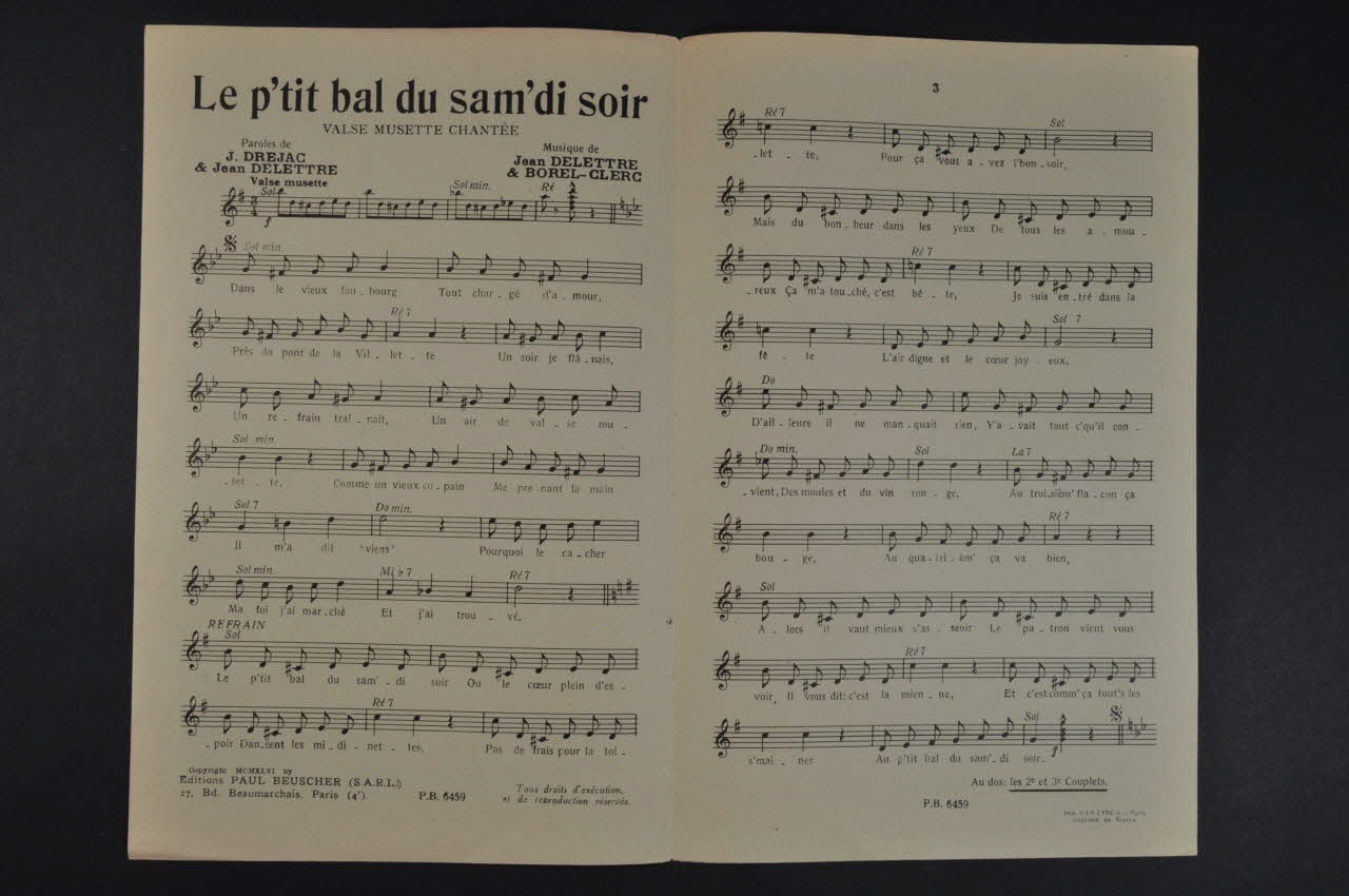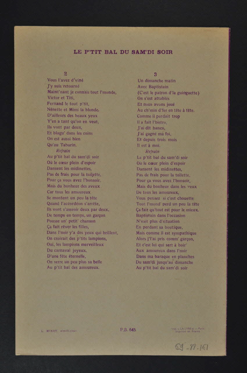 partition de musique, chanson, petit format, Le p'tit bal ou sam'di soir