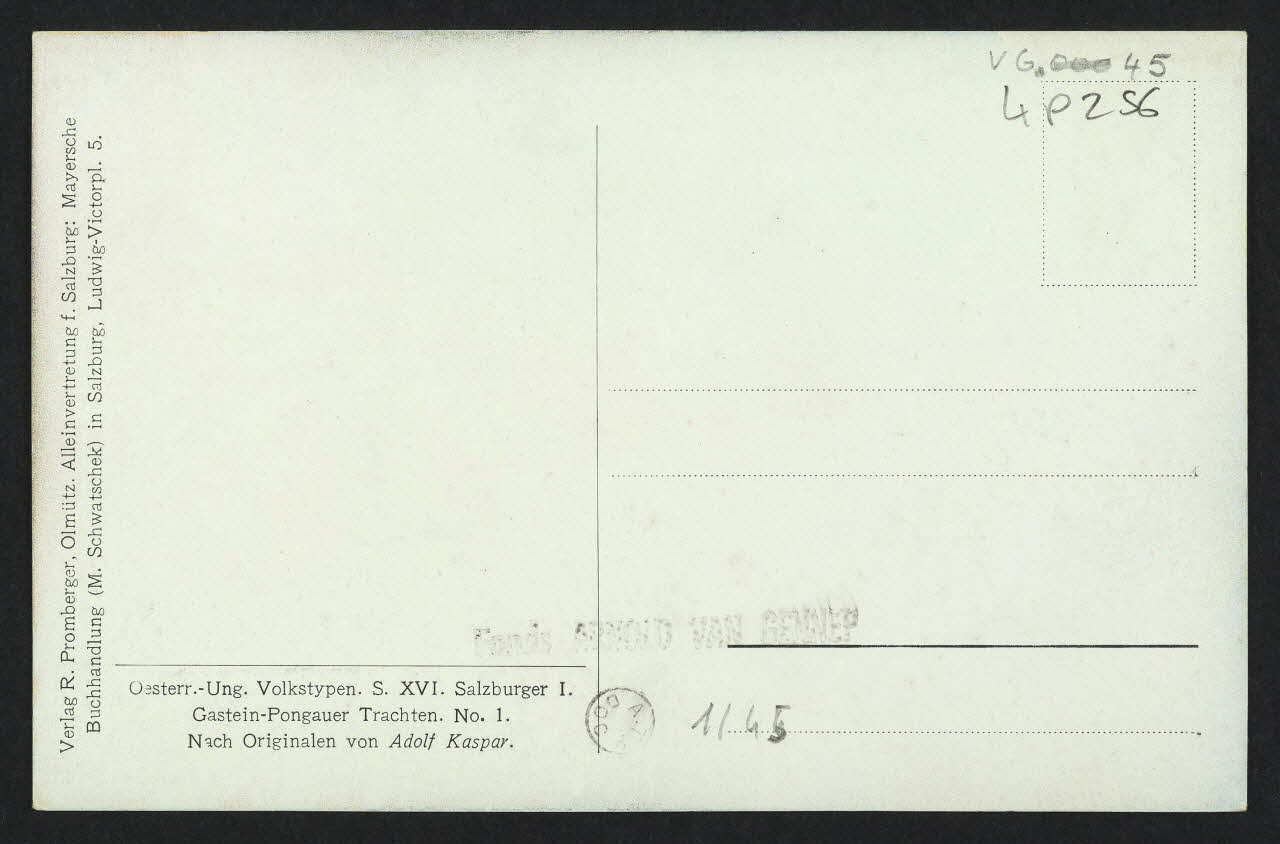 carte postale, ORIGINAL DE A. KASPAR, GASTEIN-PONGAUER TRACHTEN
