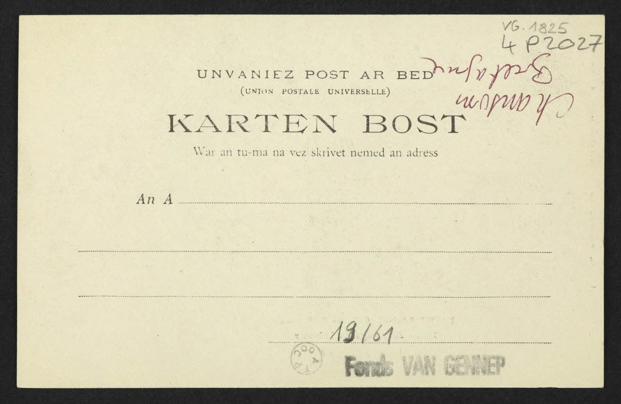 Date : 1957Acteur : Arnold Van Gennep (Donateur)Autres associations