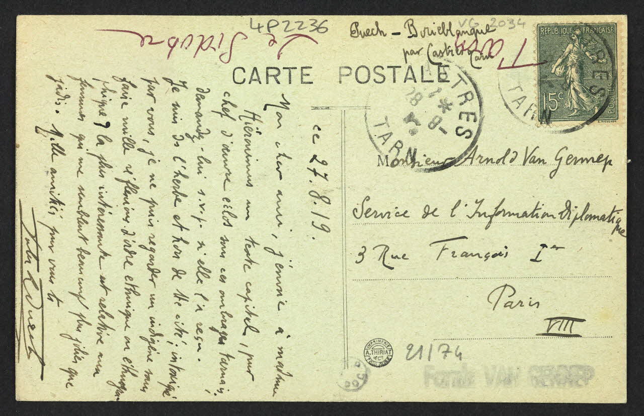 Date : 1957Acteur : Arnold Van Gennep (Donateur)Autres associations