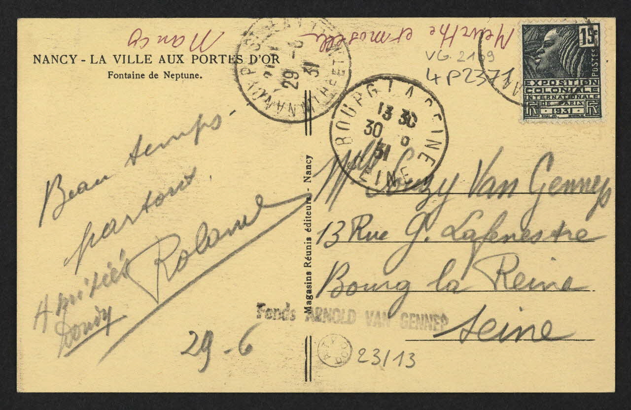 Date : 1957Acteur : Arnold Van Gennep (Donateur)Autres associations