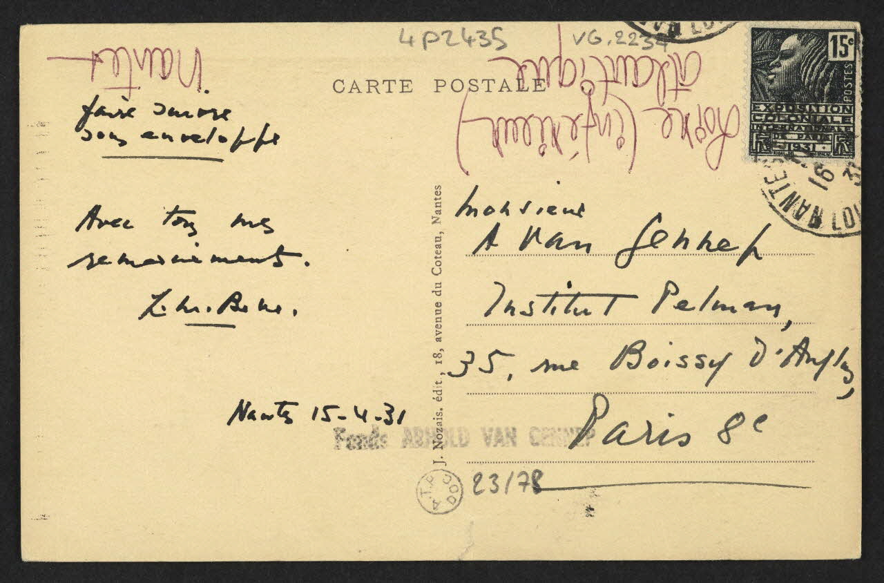 Date : 1957Acteur : Arnold Van Gennep (Donateur)Autres associations