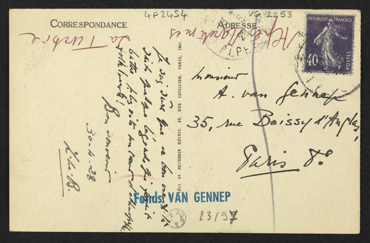 Date : 1957Acteur : Arnold Van Gennep (Donateur)Autres associations