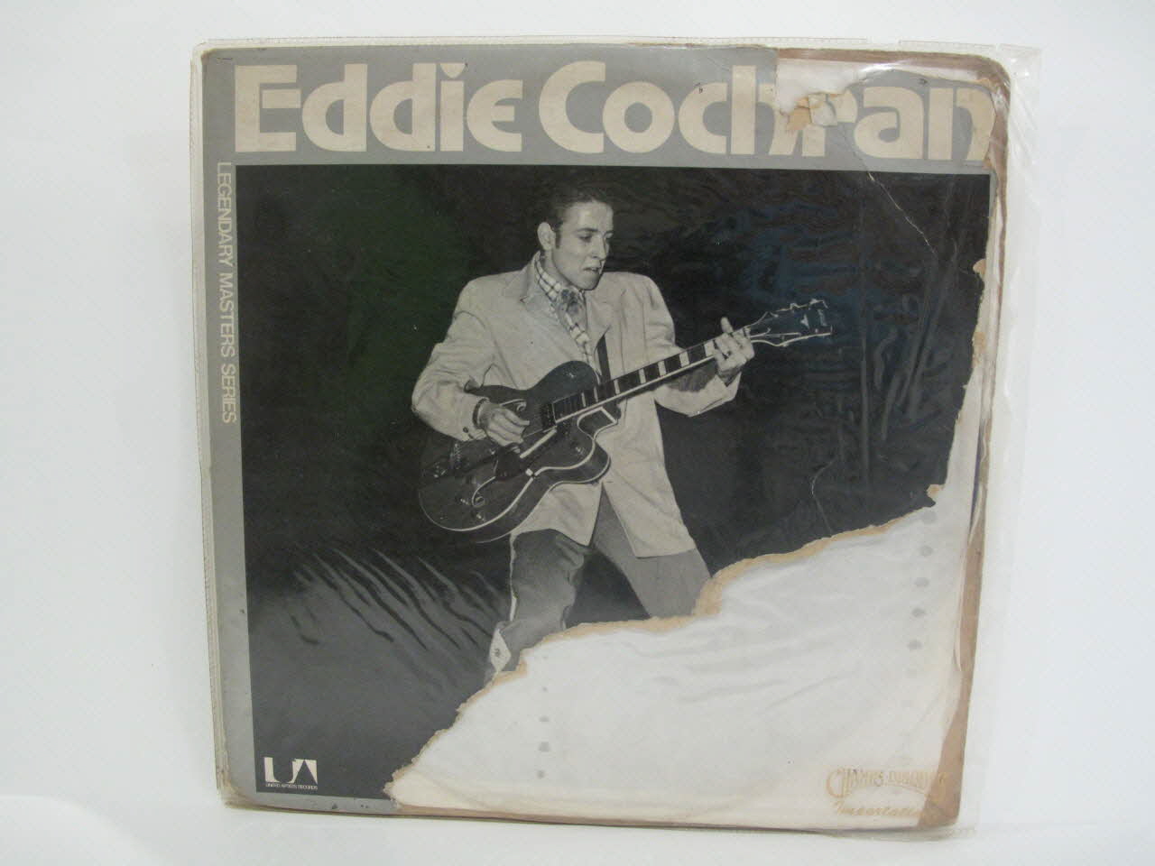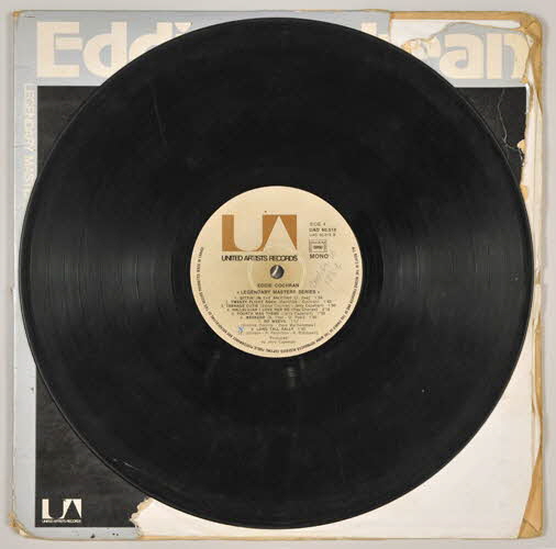 disques en vinyle / pochette en carton / enveloppe de protection / pochette contenant l'ensemble de l'album en plastique transparent / pochette double - au recto de la pochette, photographie en noir et blanc d'Eddie Cochran jouant de la guitare - au verso de la pochette, photographie en noir et blanc de l'artiste et titre des chansons - à l'intérieur de la pochette, long texte en anglais et portrait en noir et blanc de l'artiste / disques en vinyle de couleur noir - enveloppe de protection en papier blanc recouvrant un papier transparentInscriptions