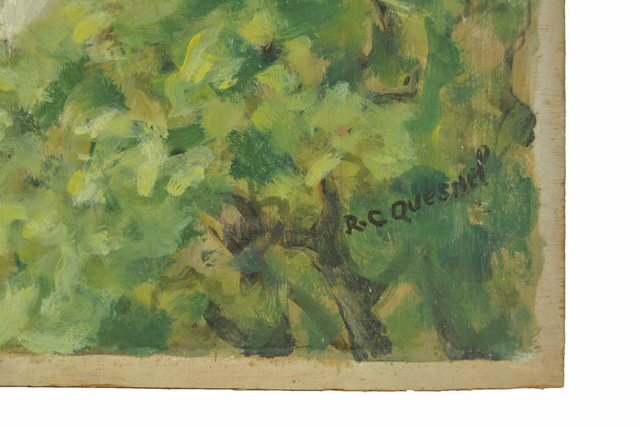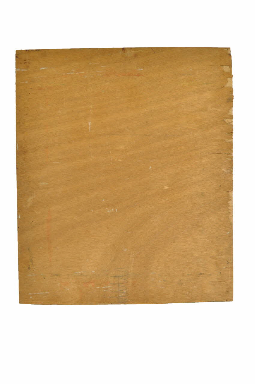 Panneau de bois contre-plaqué de forme rectangulaire peint à l'huile.