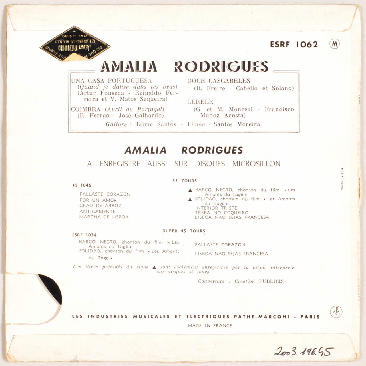 disque 45 tours, Doce cascabeles, Coimbra, Una casa portuguesa, Lerele