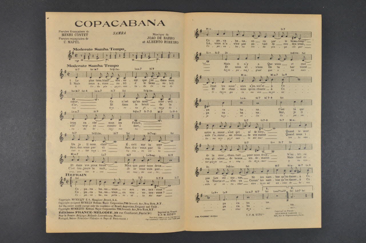 chanson, partition de musique, petit format, Copacabana