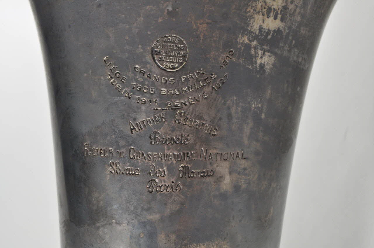 hors concours Chicago 1893 - Saint-Louis 1904 / grand prix Liège 1905 - Bruxelles 1910 - Turin 1911 - Genève 1927 / // Antoine Courtois - breveté facteur du conservatoire national - 88 rue des Marais - Paris (sur la basse)Antoine Courtois (illisible) Paris (sur l'embouchure)5 / 6 / 7 / 8 / 6 // A.Courtois Paris 1040 (sur les pistons)Matériaux et techniques