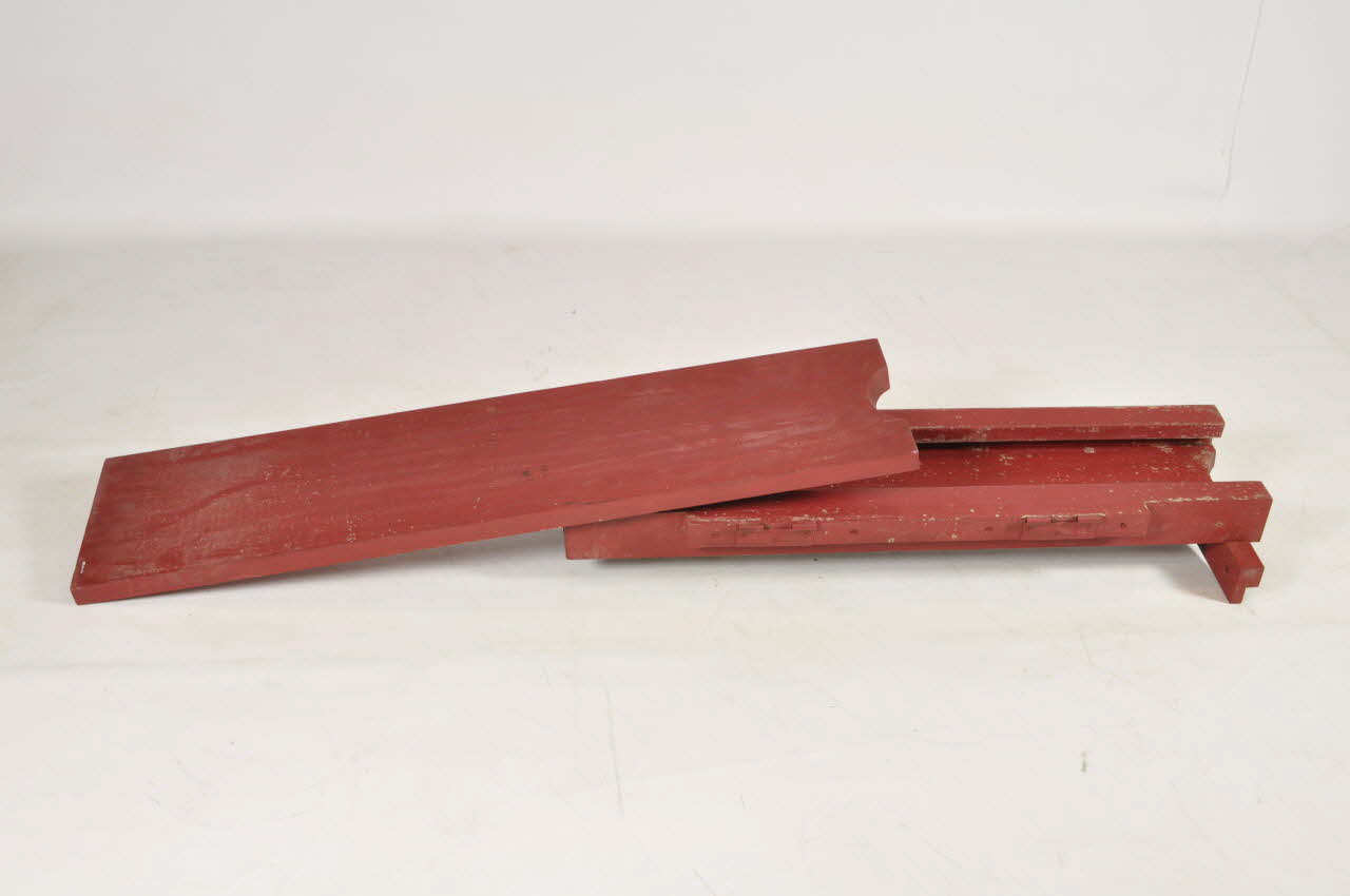 Ensemble de deux planches de bois peintes en rouge avec son système d'emboitement.