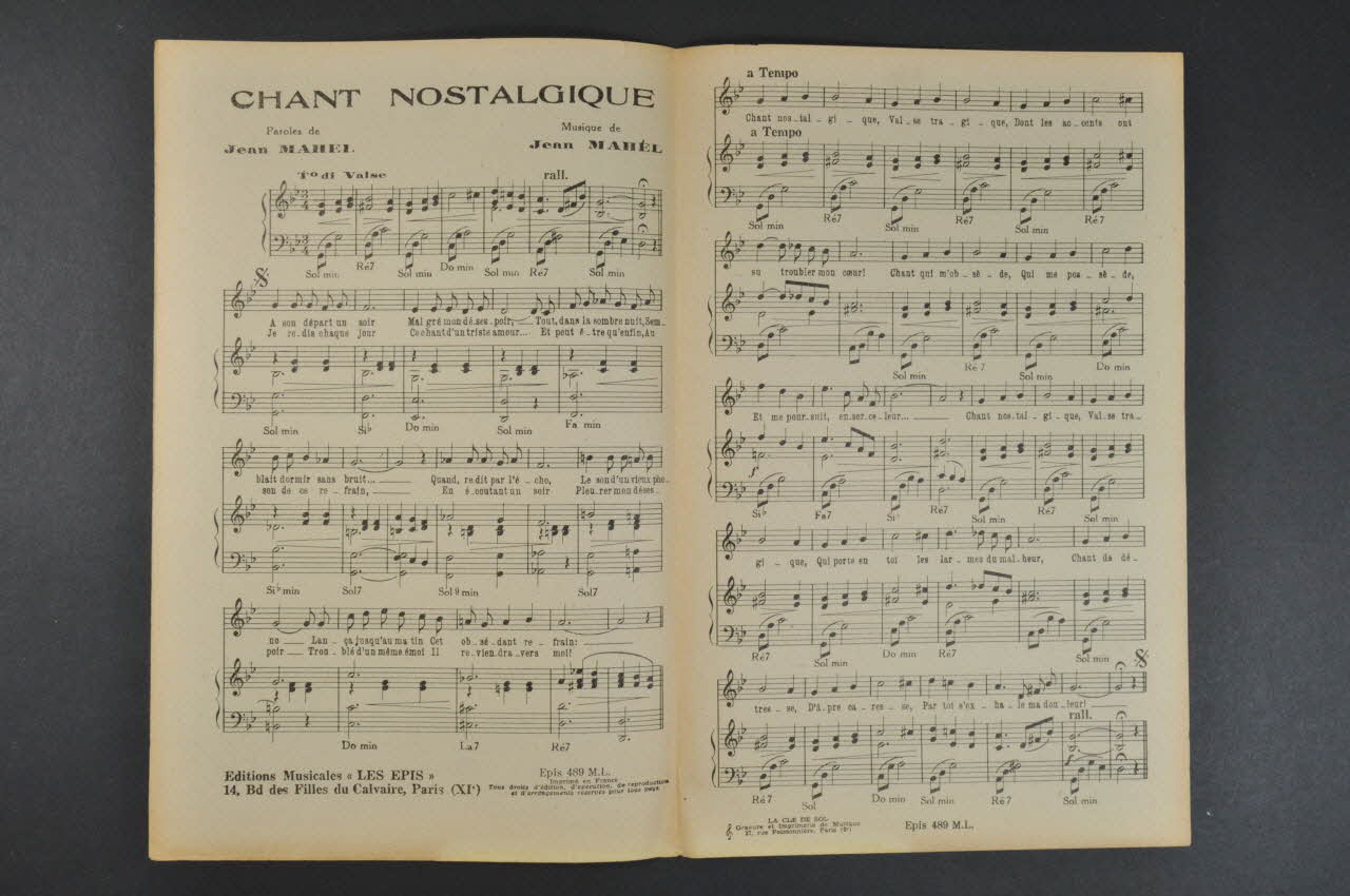 partition de musique, chanson, petit format, Chant nostalgique