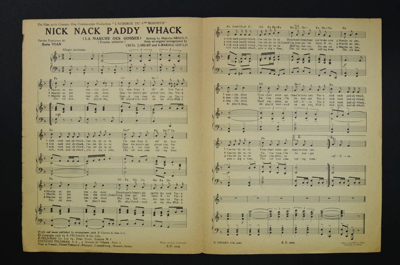 chanson, partition de musique, petit format, Nick nack paddy whack (Le marche des gosses)