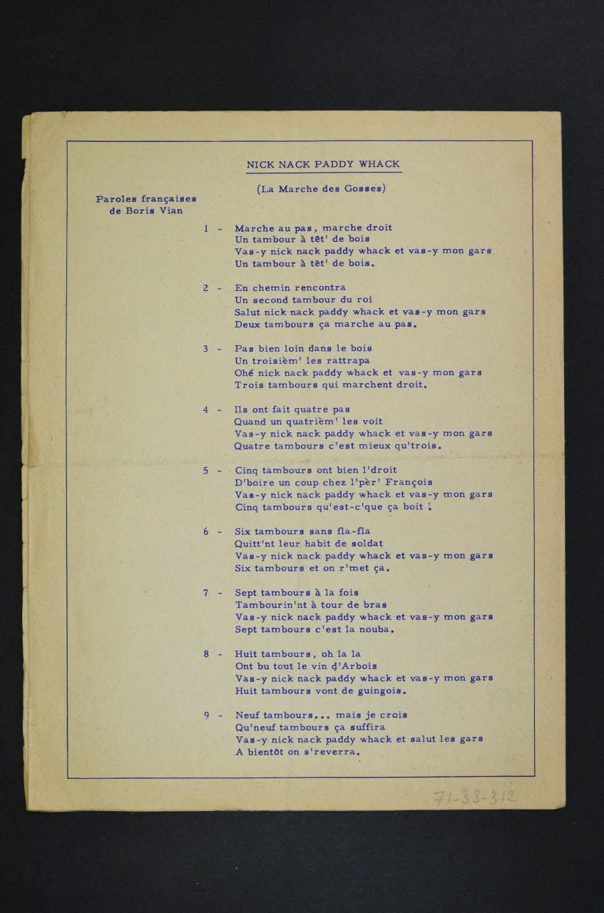 - Titre : Nick nack paddy whack (Le marche des gosses)