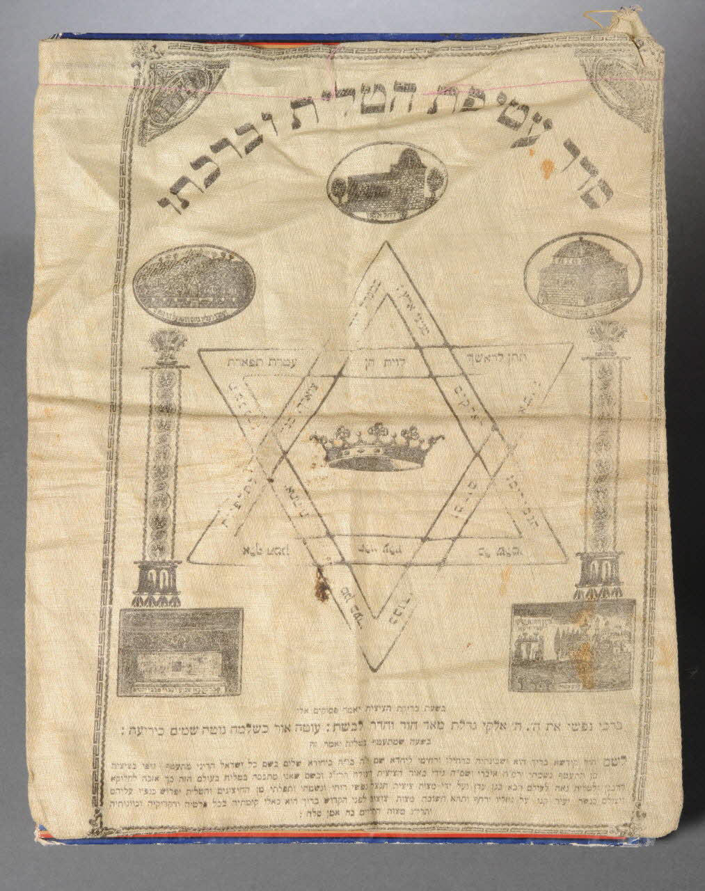 Sur la face A, une étoile à six branches encadrée de deux colonnes est entourée de sept représentations de la ville sainte dans des cadres ovales, triangulaires ou rectangulaires. Sous le décor figurent des inscriptions en hébreux. Sur la face B, une grande vue de la ville de Jérusalem est positionnée dans un cadre rectangulaire. Un texte en hébreux surmonte cette représentation. Dans la partie basse, deux cyprès encadrent deux lions couronnés surmontant des vues de la ville. Ils sont affrontés autour d'un chandelier à sept branches le long duquel figurent des inscriptions.Décor