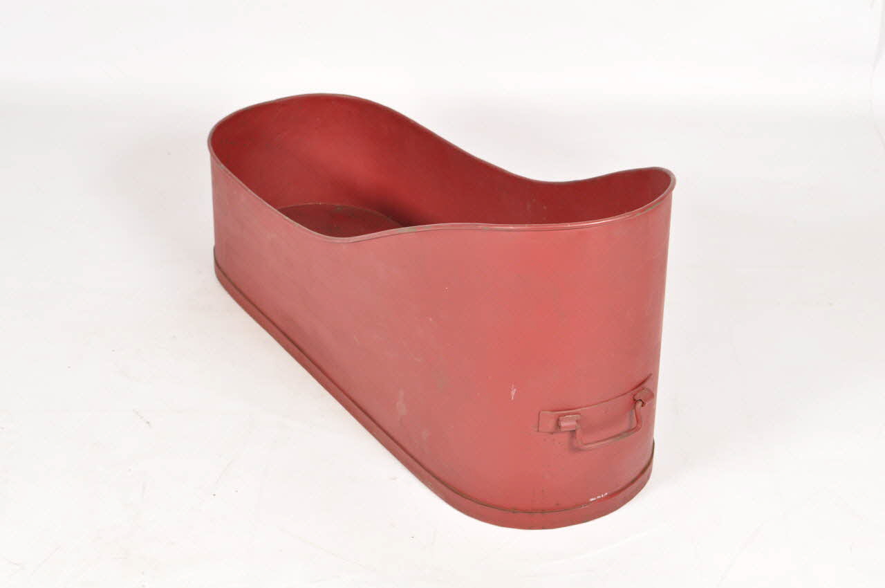 Elle reçoit la tête du condamné une fois guillotiné. De base ovale, elle présente un rebord bas à une extrémité et plus haut à l'extrémité opposée. Ainsi qu'une poignée amovible à chaque extrémité.Matériaux et techniques