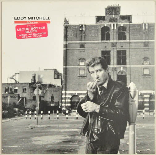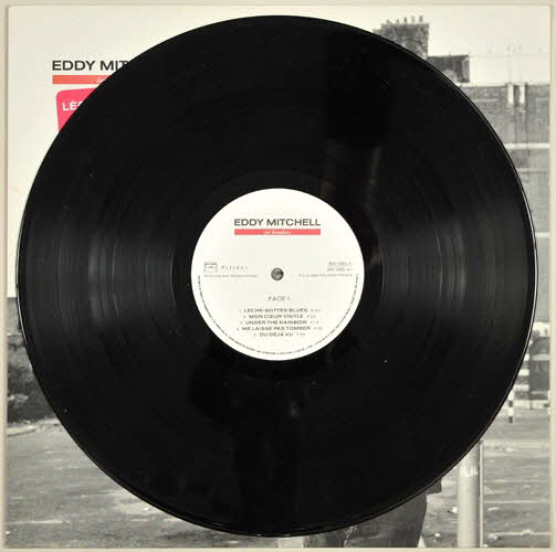 sous pochette / enveloppe de protection en papier / pochette en carton / disque en vinyle de couleur noire / au recto de la pochette, photographie en noir et blanc et en extérieur d'Eddy Mitchell (décor d'immeubles sombres et désaffectés ?) - au dos de la pochette, extrémité droite de la photographie du recto, paroles des chansons sur fond rouge et inscriptions relatives à la maison de disques / disque vinyle de couleur noir - sur la partie centrale, inscriptions noires sur fond blanc - titre de l'album en blanc sur une bande rouge / l'enveloppe de protection du disque sert aussi de livret - sur une face, elle comprend les paroles des chansons et mentionne le nom de tous les intervenants (musiciens, enregistrements, réalisation pochette, photographes, etc.) - écriture blanche sur fond rouge - l'autre face comprend une photographie du visage d'Eddy Mitchell (agrandissement de la photographie du recto de la pochette)Inscriptions