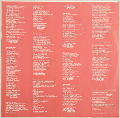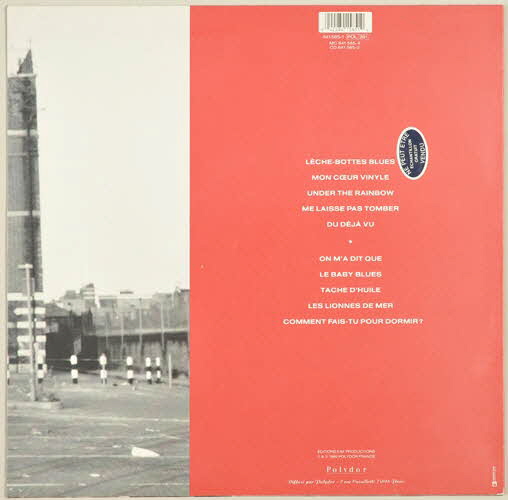 INCLUS // LECHE-BOTTES / BLUES // UNDER THE RAINBOW // LE BABY BLUES (sur un autocollant, au recto de la pochette)NE PEUT ETRE VENDU // ECHANTILLON GRATUIT (sur un autocollant, au dos de la pochette)Polydor // 841 585-1 (référence de l'album)Décor