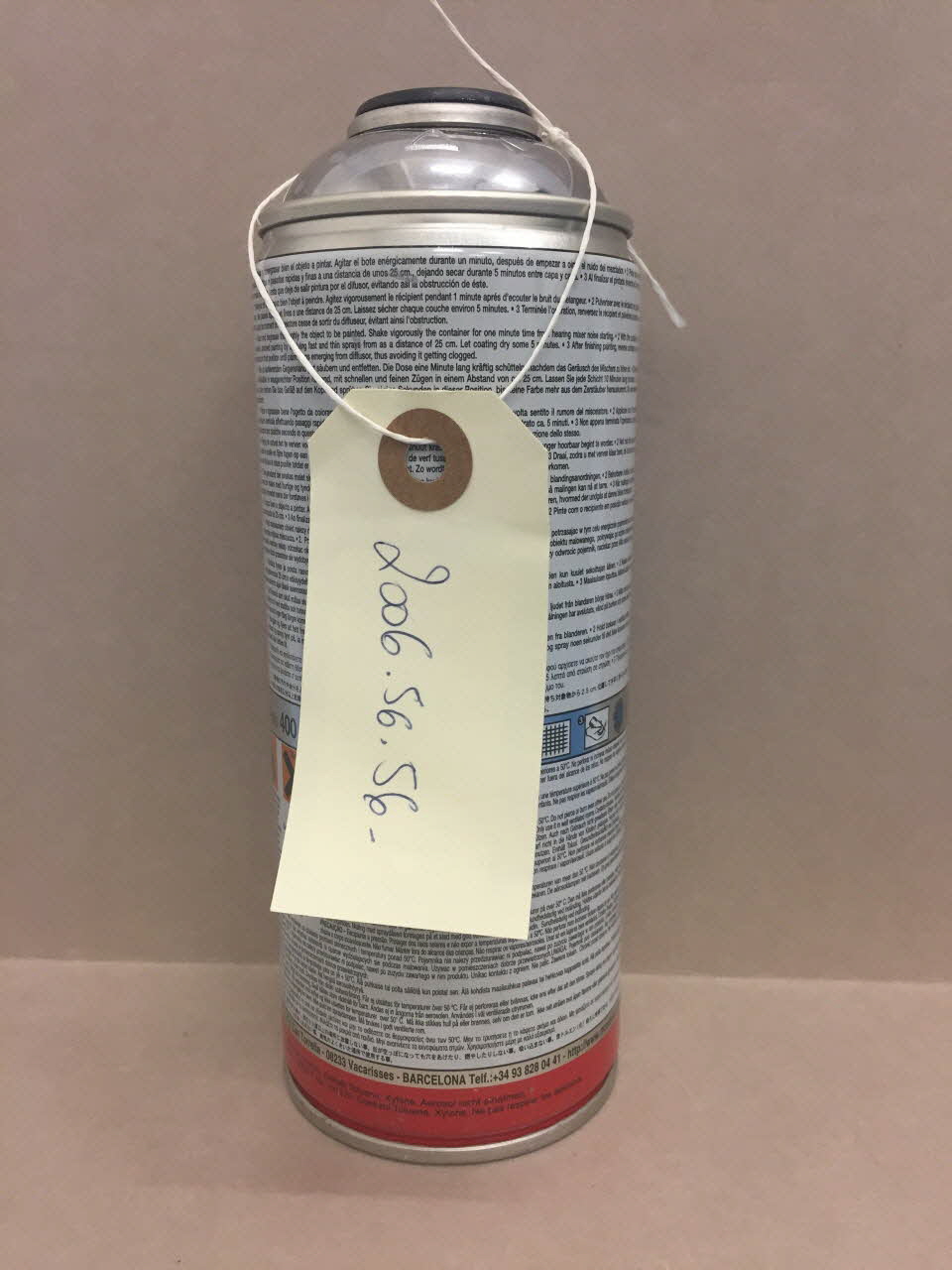 Date : 1980 - 1995L'ensemble de 91 bombes furent utilisées par le graffeur de 1980 au milieu des années 1990. Il s'agit de sa collection personnelle. La plupart sont des bombes pour auto, volées en grande surface.