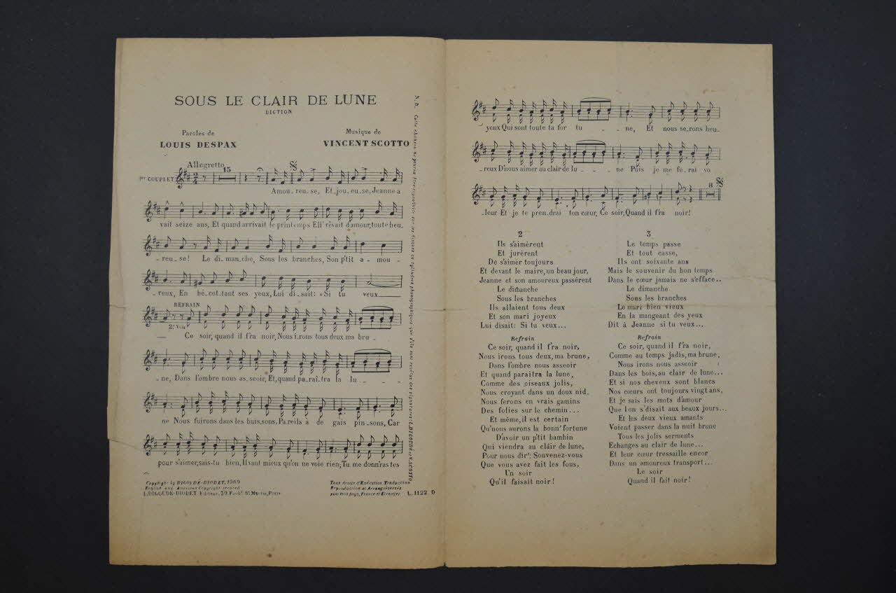 chanson, petit format, partition de musique, Sous le clair de Lune