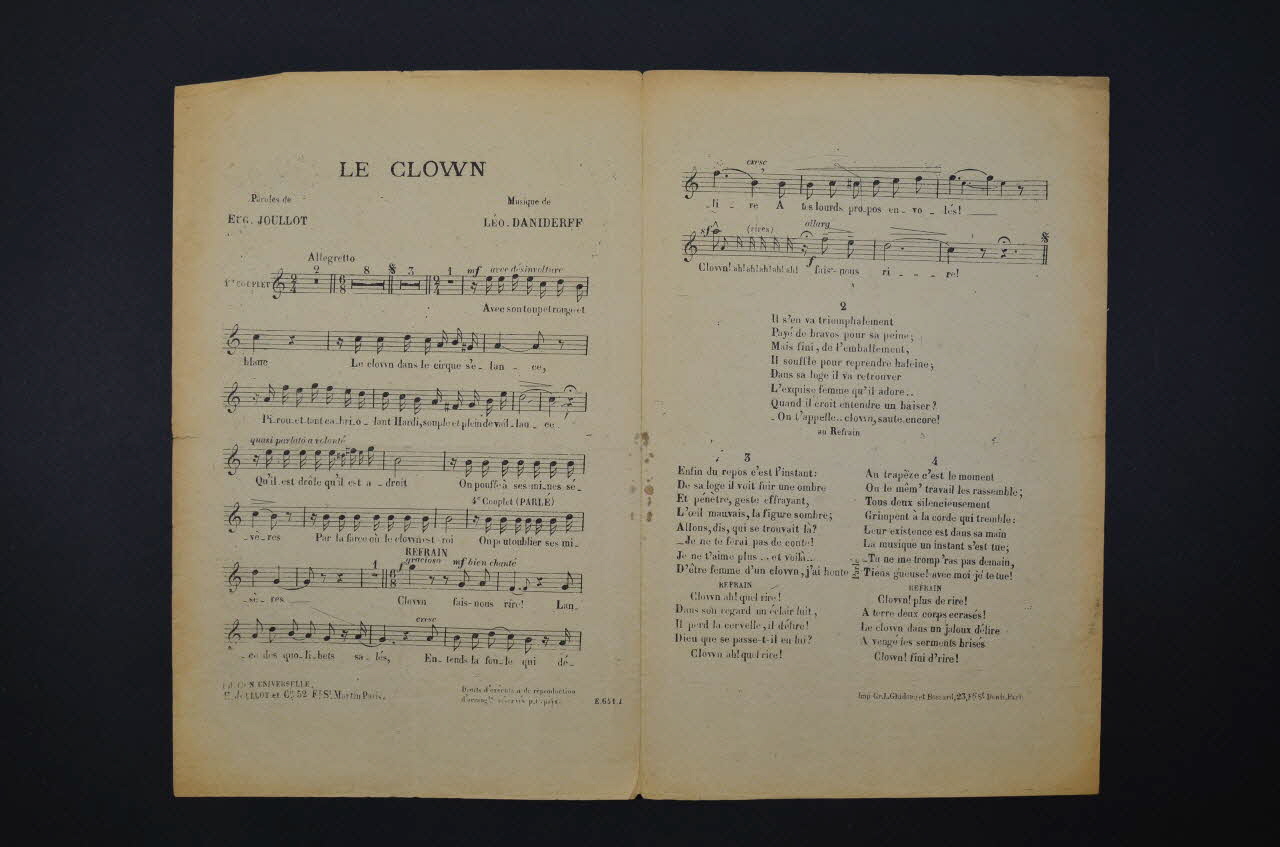 chanson, petit format, partition de musique, Le clown