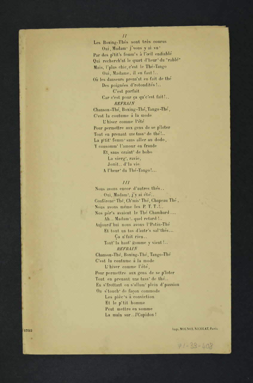 chanson, partition de musique, petit format, Le thé tango