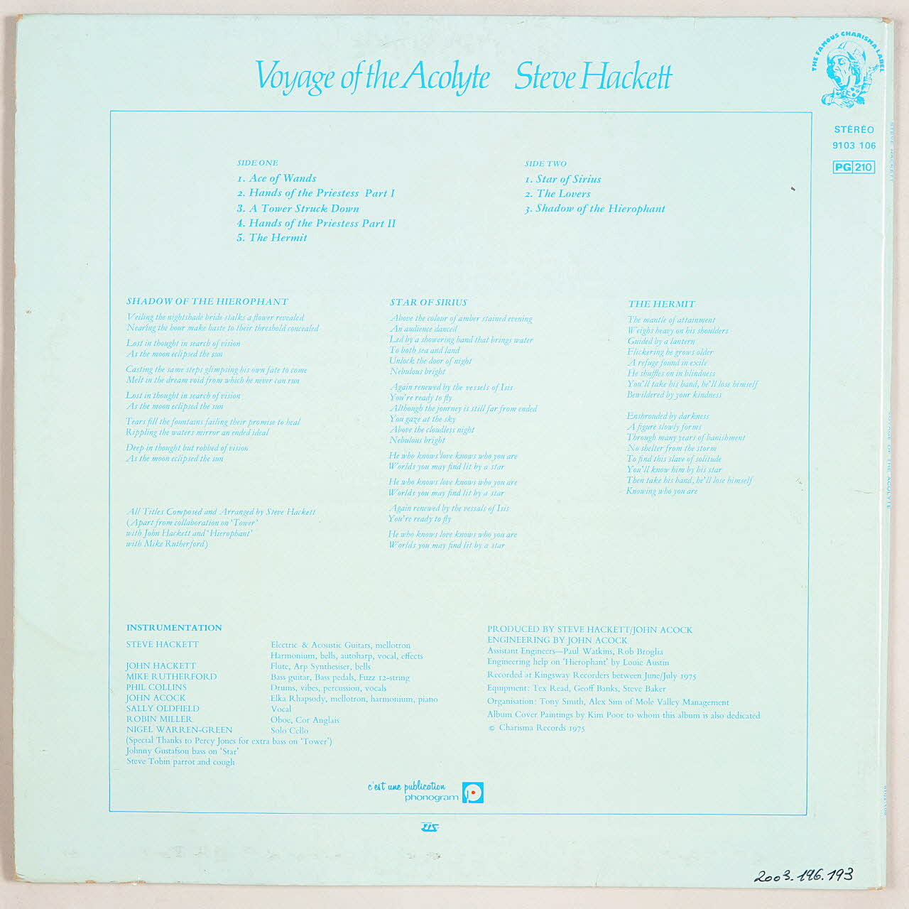 disque 33 tours, The hermit, The lovers, Hands of the priestess, Ace of wands, Star of Sirius, The shadow of the hierophant, Voyage of the acolyte, A tower struck down