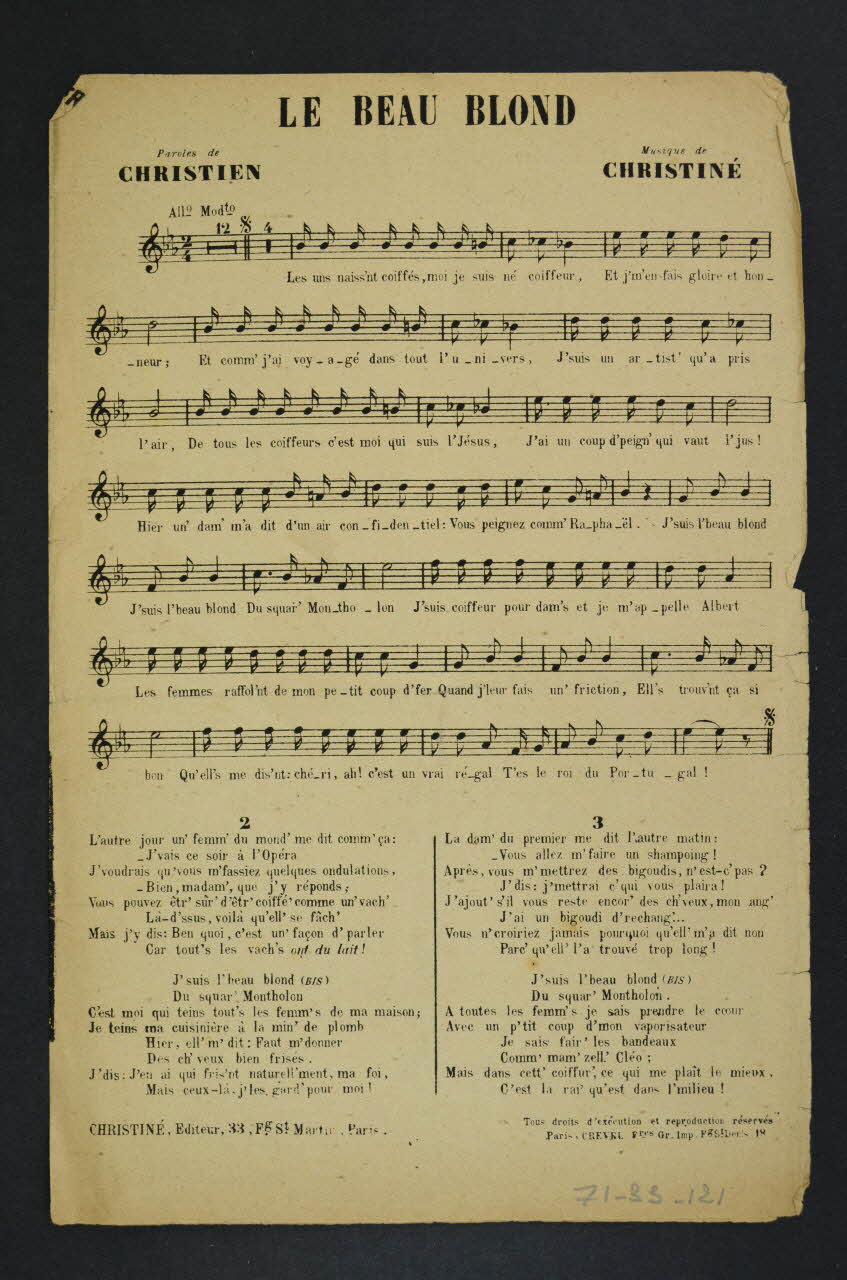 chanson, partition de musique, petit format, Le beau blond