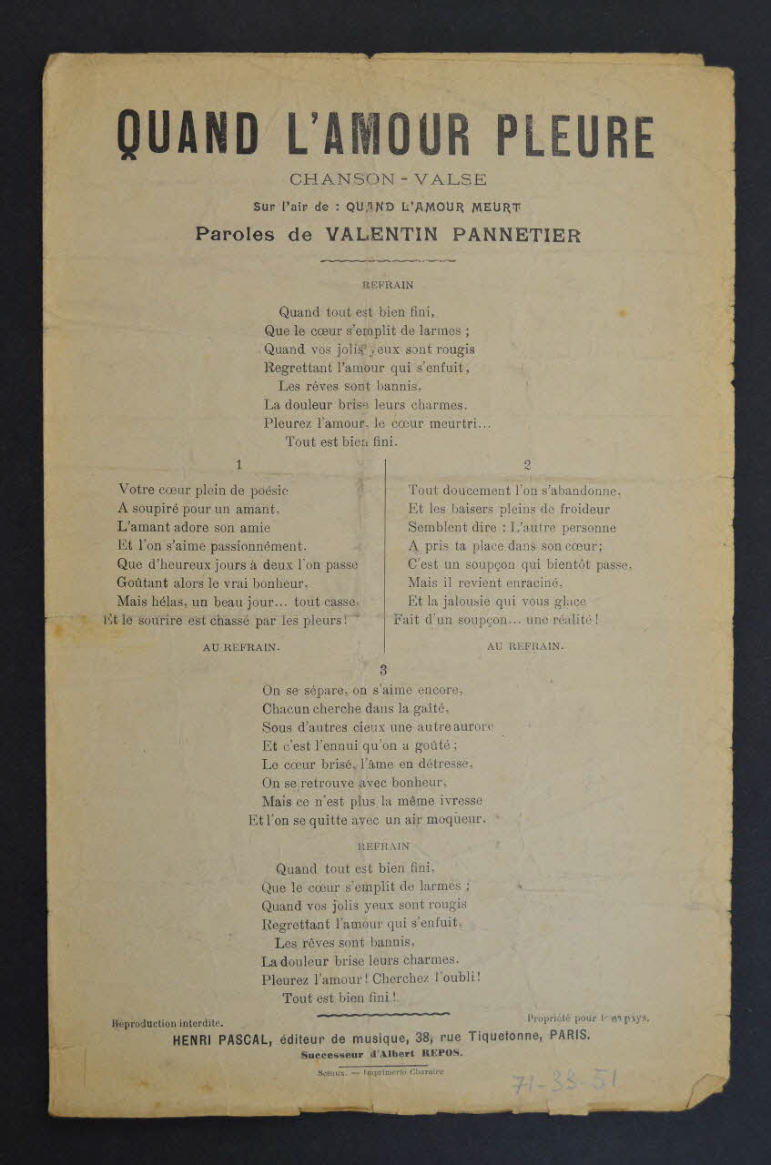 chanson, petit format, Quand l'amour pleure
