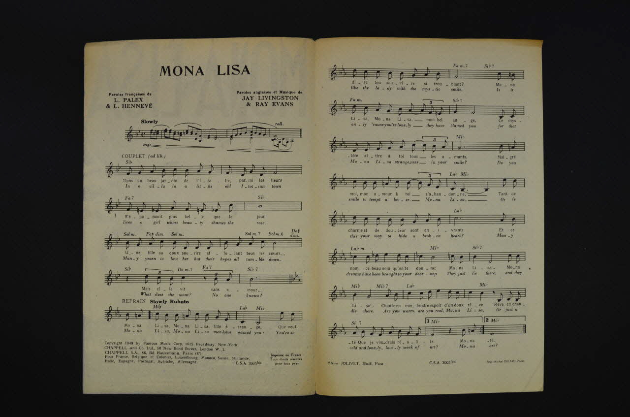 chanson, partition de musique, petit format, Mona Lisa