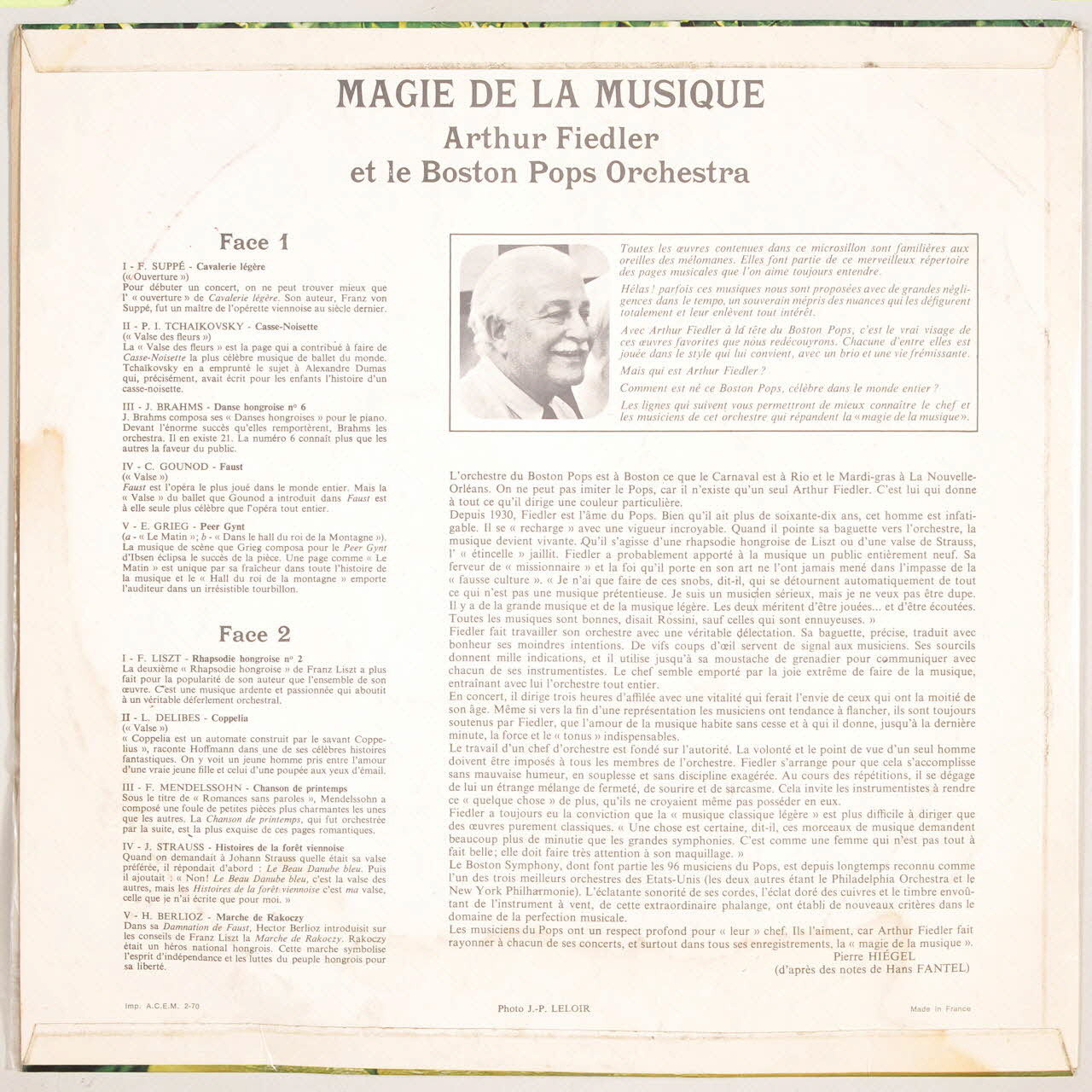 disque 33 tours, Valse de Faust, Chanson de printemps, Cavalerie légère, Le matin, Rhapsodie hongroise n°2, Magie de la musique, Histoires de la forêt viennoise, Dans le hall du roi de la Montagne, Valse des fleurs, Marche de Rakoczy, Valse de Coppella, Danse hongroise