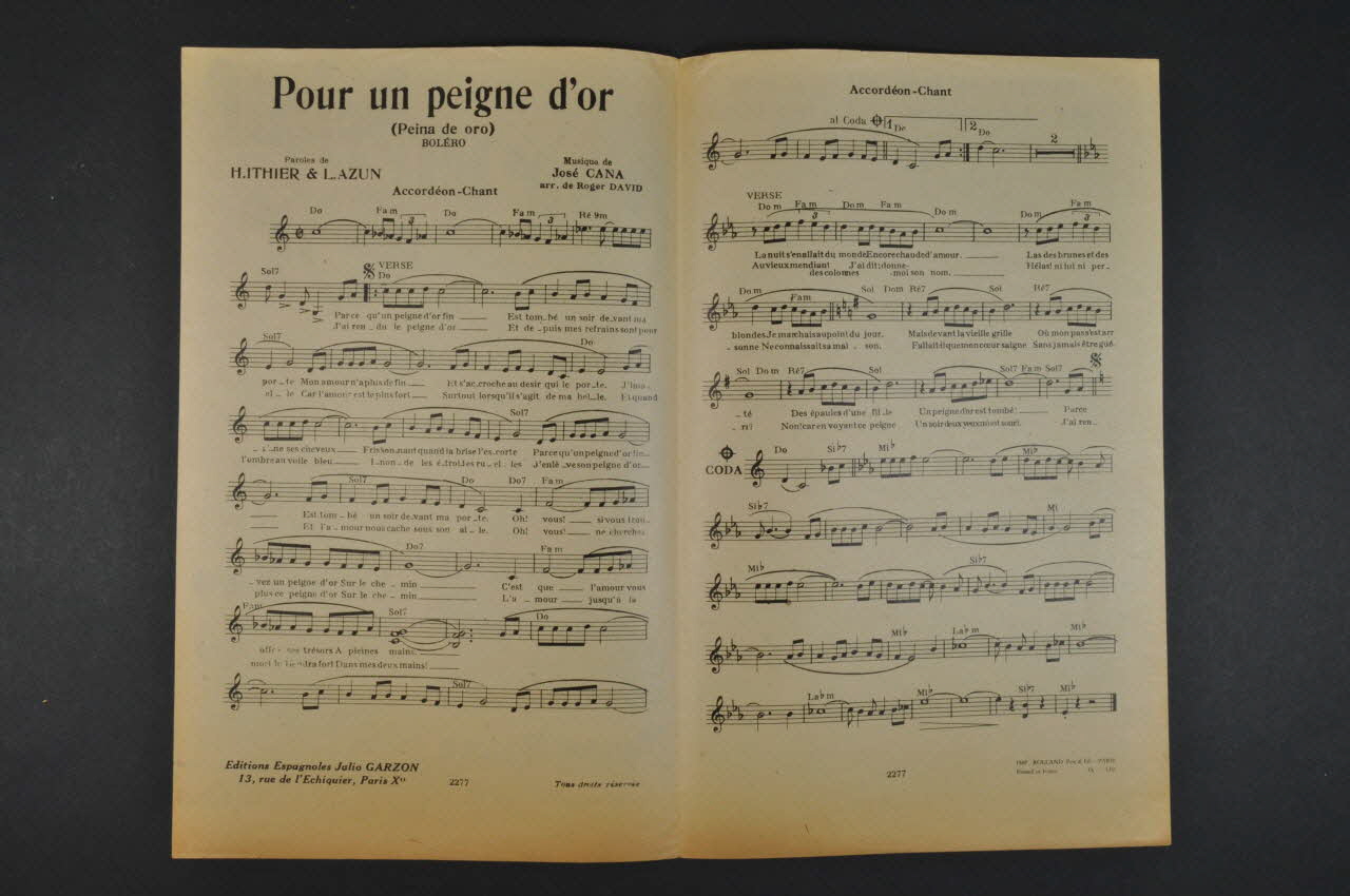 partition de musique, chanson, petit format, Pour un peigne d'or (peina de oro)