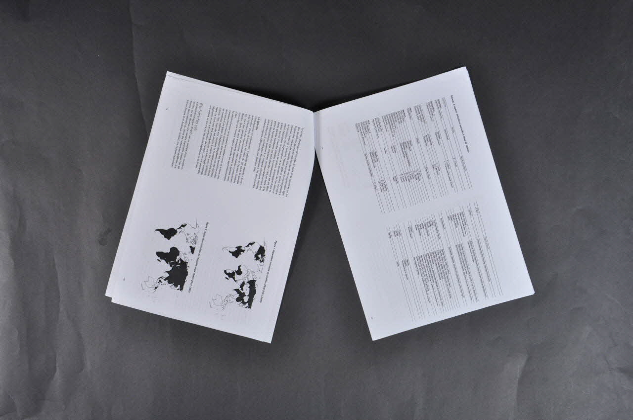 agrafé / Dossier constitué de cinq pages de papier blanc, imprimées recto-verso en noir et assemblées par une agrafe dans l'angle supérieur gauche. La première page présente un cadre noir avec le titre inscrit en blanc. Les pages sont imprimées à l'endroit sur le recto et à l'envers sur le verso. Il s'agit de photocopies d'un extrait d'un livre. Les pages sont illustrées de tableaux et de cartes.Inscriptions
