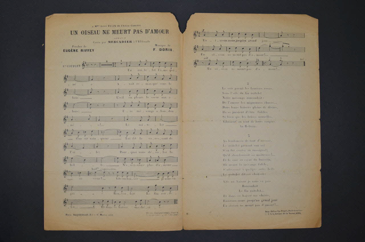chanson, petit format, partition de musique, Un oiseau ne meurt pas d'amour