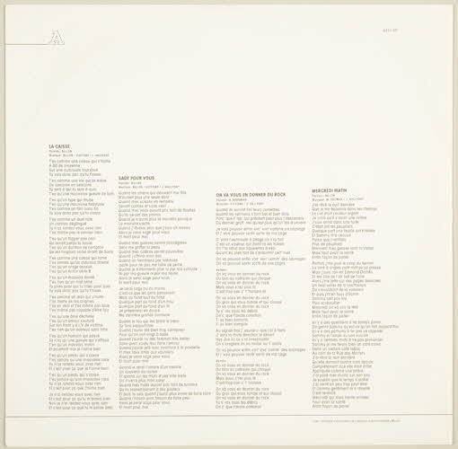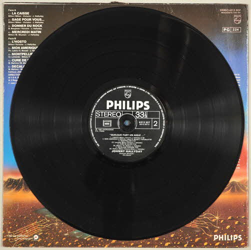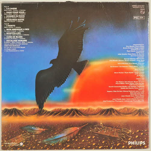 "Avec l'aimable autorisation des Editions Johnny Hallyday Music" (sur l'enveloppe de protection, en dessous des textes des chansons)6313 307 (référence de l'album)Décor