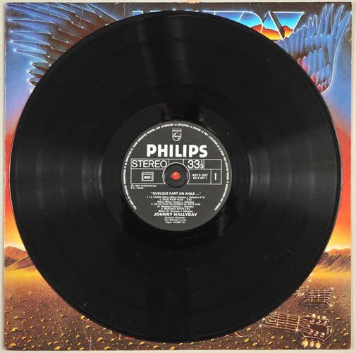 disque en vinyle de couleur noire / pochette en carton / enveloppe de protection en papier blanc / sur la pochette dessin de Johnny Hallyday ayant l'apparence d'un aigle, posé sur une guitare cassée dans un paysage désertique / disque vinyle de couleur noire - partie centrale de couleur noire avec inscriptions grises / l'enveloppe de protection du disque comporte les paroles des chansonsInscriptions
