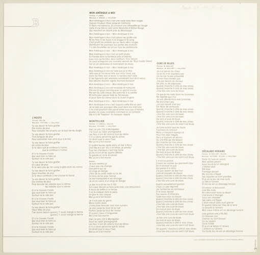 face A : // La caisse (Billon / Billon - Victoire - J. Hallyday) // Sage pour vous... (Billon / Billon - Victoire - J. Hallyday) // Donner du rock (B. Bergman / Victoire - J. Hallyday // Mercredi matin (Billon / M. Shuman - J. Hallyday) // face B : // L'hosto (Billon / Victoire - J. Hallyday) // Mon Amérique à moi (Ph. Labro / E. Bouad - J. Hallyday) // Montpellier (Cl. Lemesle - Billon / Victoire - J. Hallyday) // Cure de blues (M. Mallory / M. Mallory - J. Hallyday) // Décalage horaire (M. Mallory - Billon / Victoire - Billon - J. Hallyday (titre des chansons // 9 titres)Numéro